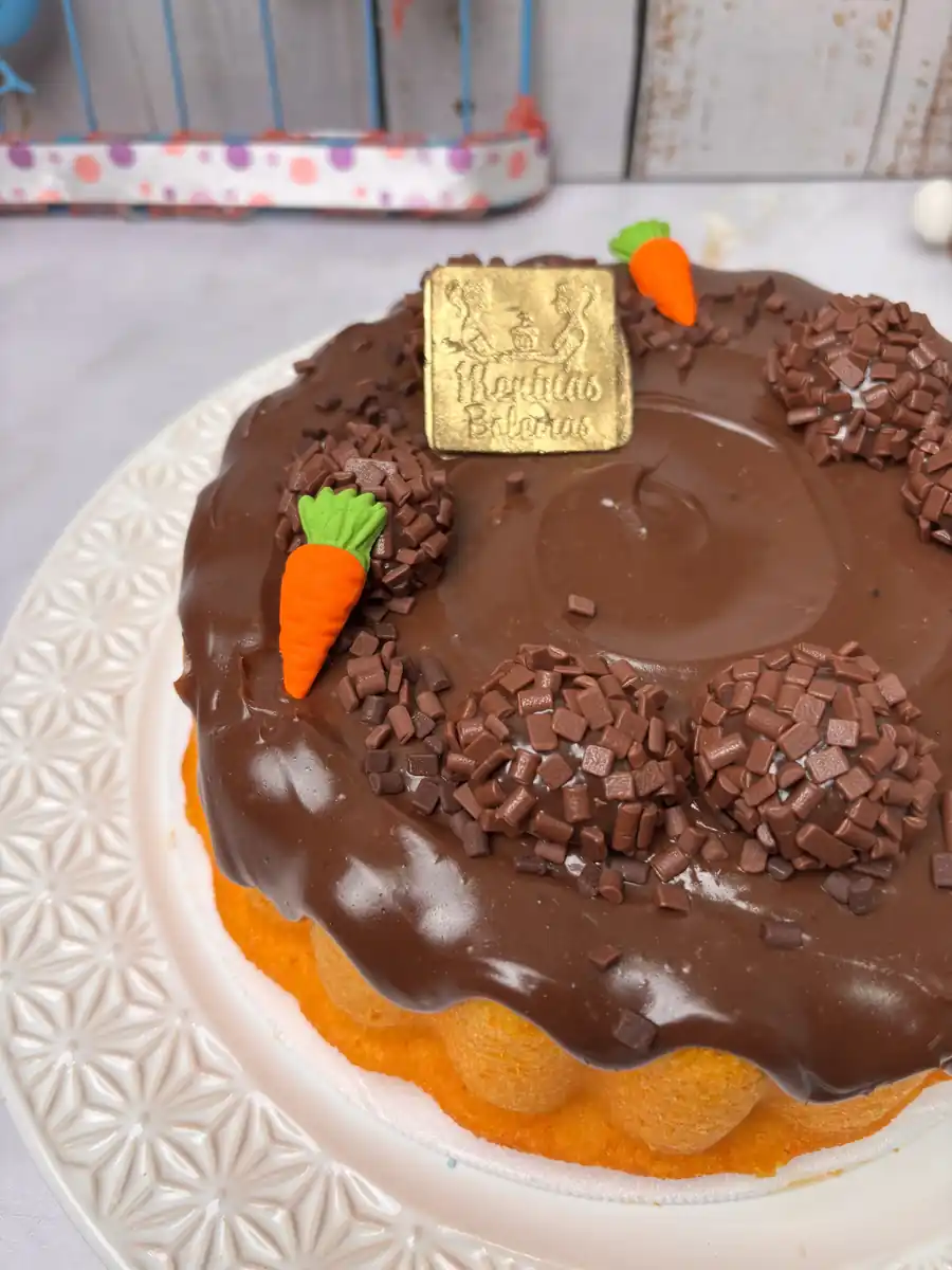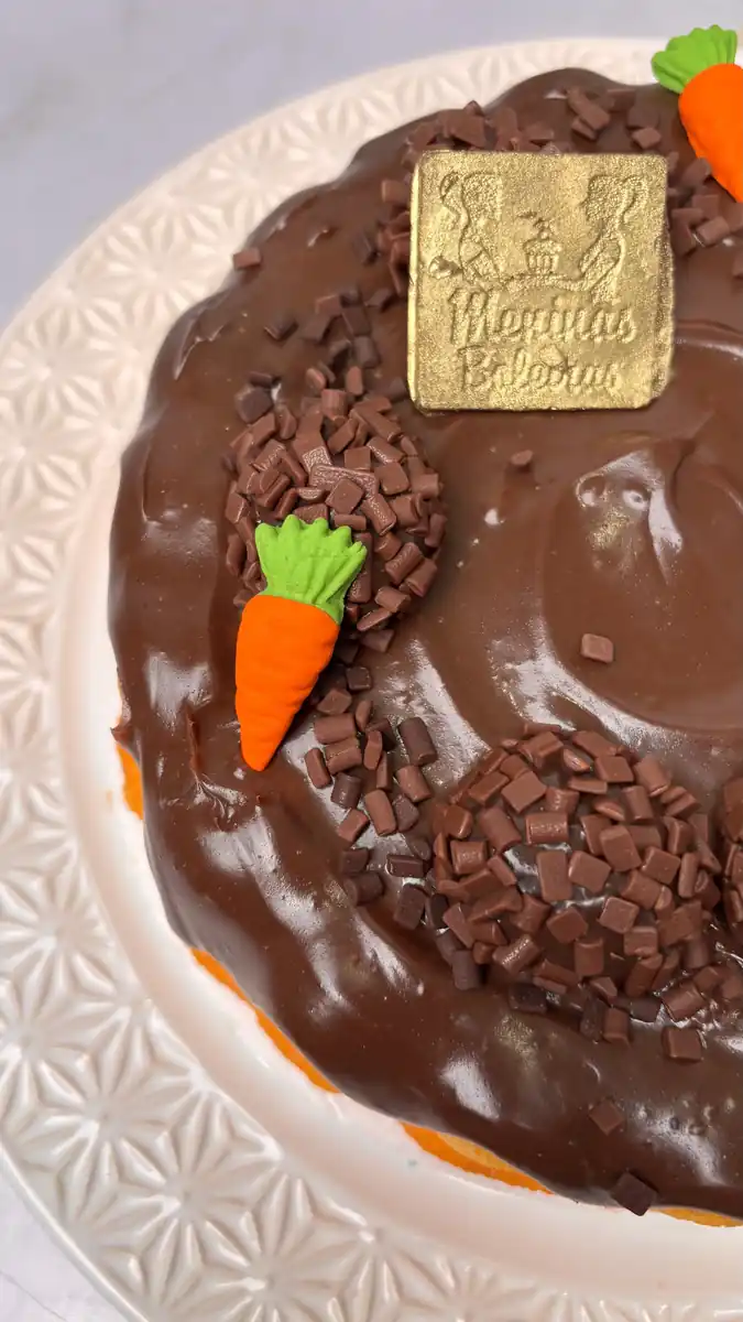 Bolo de massa de cenoura coberto com muito brigadeiro ao leite cremoso.