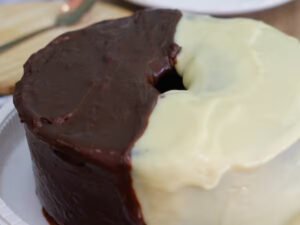 Nossa famosa e deliciosa massa de chocolate, com muuitooo brigadeiro cremoso gourmet branco e ao leite, Com morangos no topo.