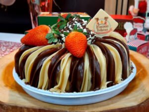 Bolo Ouro Branco. Massa de chocolate com cobertura metade brigadeiro preto e metade de ganache branco. O melhor brigadeiro de barão geraldo. Só experimentando. Peso médio 750 g, lembrando que, como os bolos são bem artesanais, podem sofrer variações nos pesos para mais ou para menos.
